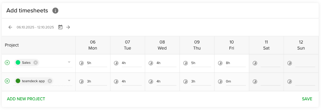 Teamdeck’s Simplified Timesheets Reporting makes it easier to log and manage your hours directly from the dashboard.