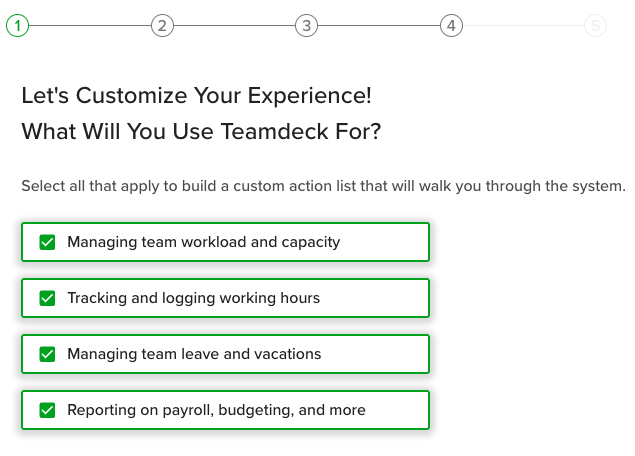 NOTE: You don’t need to go through the all of the steps, but they would help to better suit teamdeck to your team’s needs.