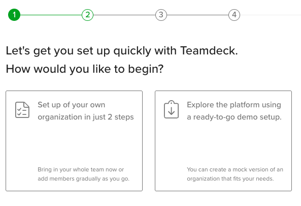 Sign up to create a new organization to start using Teamdeck