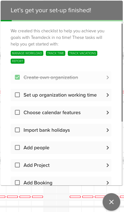 It takes less than 10 minutes to configure your organization in teamdeck. When it’s done, you can start inviting your team members and start scheduling their work.